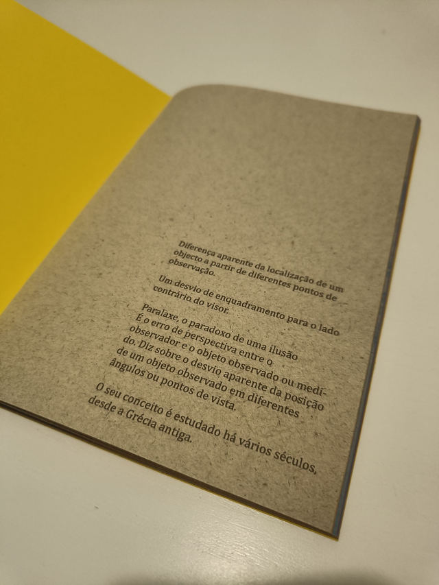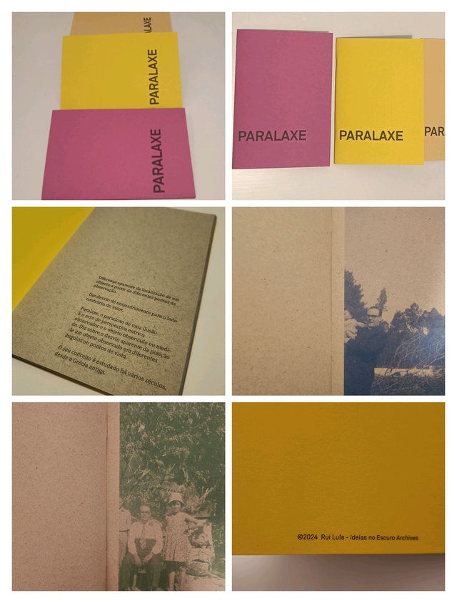 Publicação de Rui Luís onde foram reunidas diversas imagens do Arquivo Ideias no Escuro onde é visível o chamado erro de Paralaxe. Diferença aparente da localização de um objecto a partir de diferentes pontos de observação. Um desvio de enquadramento para o lado contrário do visor. Paralaxe, o paradoxo de uma ilusão. É o erro de perspectiva entre o observador e o objeto observado ou medido. Diz sobre o desvio aparente da posição de um objeto observado em diferentes ângulos ou pontos de vista. O seu conceito é estudado há vários séculos, desde a Grécia antiga. Foram publicados 24 exemplares numerados e assinados.